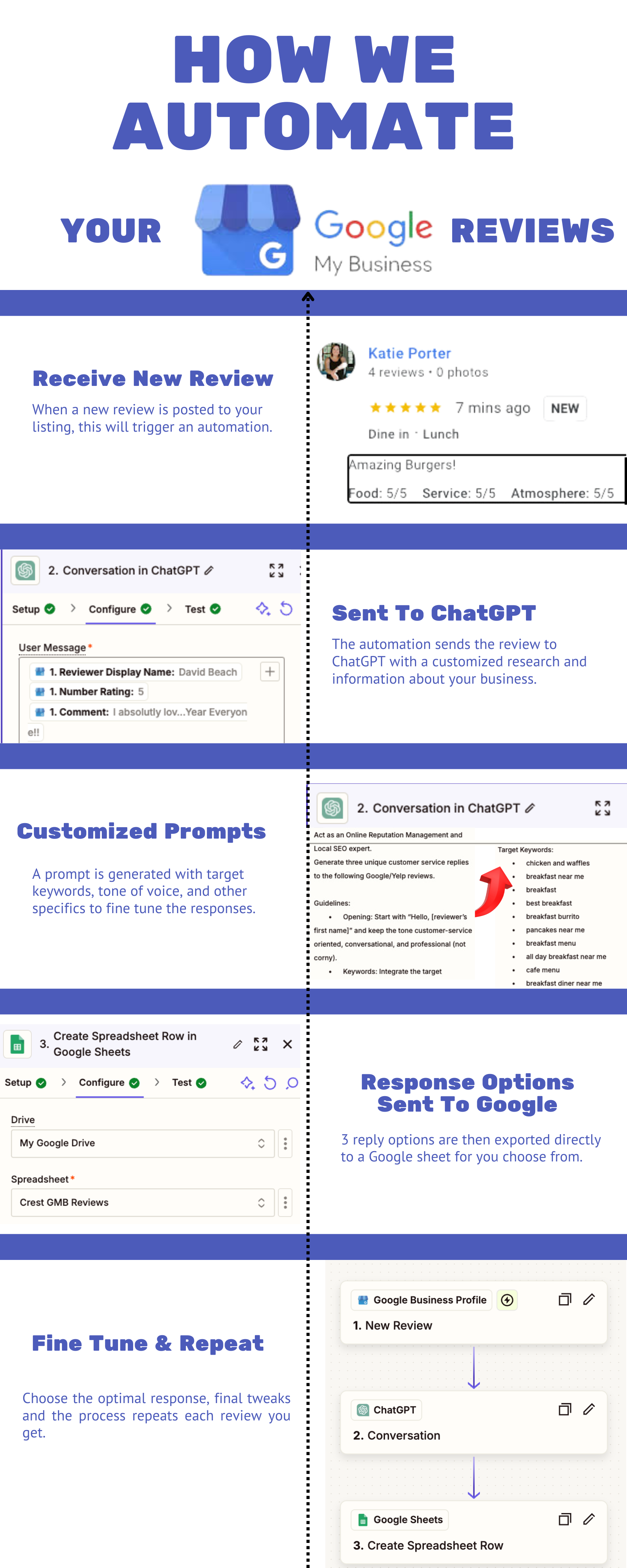 Automate & Optimize Your Review Responses Automate & Optimize Your Review Responses Automate & Optimize Your Review Responses If it doesn’t save you time and headache, you can keep it all month long on us! Pricing:Initial setup: $250-$500Keyword updates: $180 Try one for a FREE! Start Automating